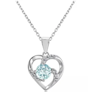 Sterling Silver Blue Topaz Swirl Heart Necklace