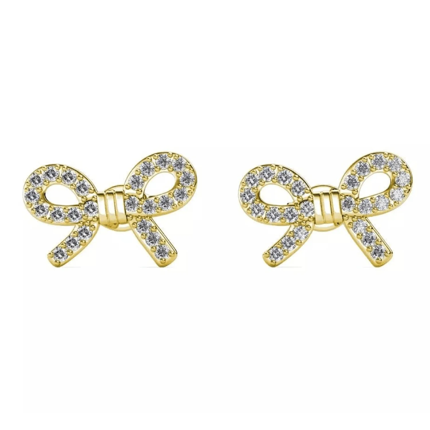 A sweet and charming accessory for any occasion. These petite bow studs feature a bright gold-tone finish and are completely encrusted with shimmering pave cubic zirconia stones.