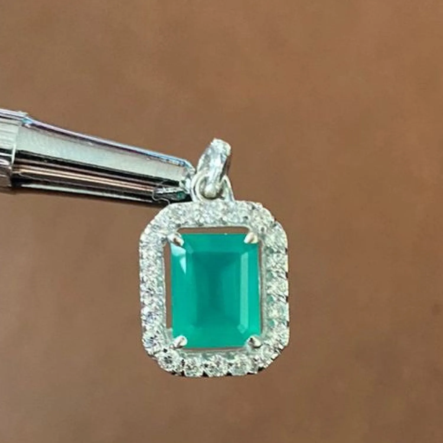 Be the first to review “Emerald-Cut Green Onyx Halo Pendant” Cancel reply