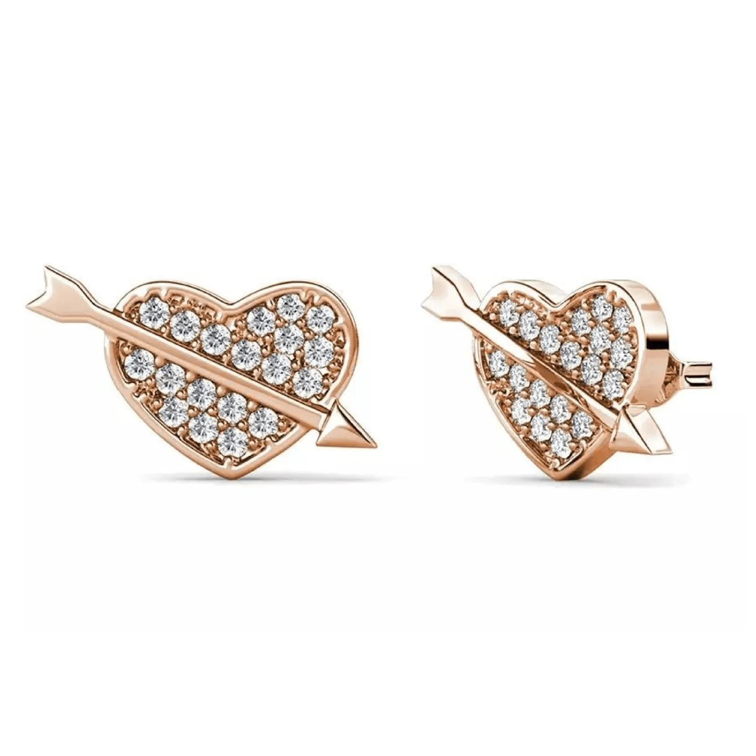 A perfect blend of romance and shine, these studs feature a heart pierced by an arrow. The heart is completely paved with brilliant cubic zirconia stones, set in a lovely, warm rose gold-tone finish.