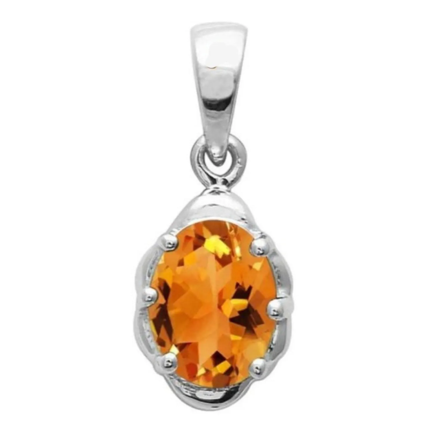 A sunny and bright pendant featuring a dazzling oval-cut Citrine gemstone known for its warm, golden-orange color. The solitaire stone is securely held by curved prongs in a polished sterling silver mount.