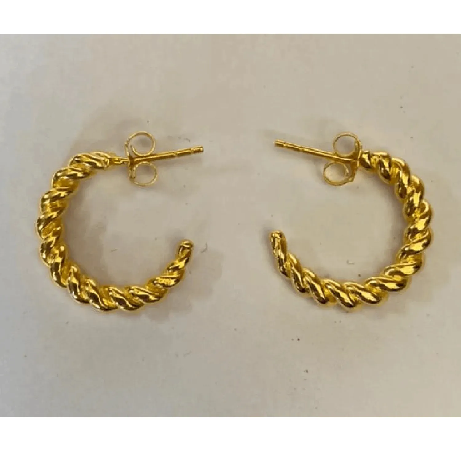 These classic C-hoop earrings have been updated with a beautiful textural detail. The gold-tone finish features a delicate twisted rope design around the entire hoop, giving them a rich, artisanal feel. They are a lightweight and stylish everyday piece.